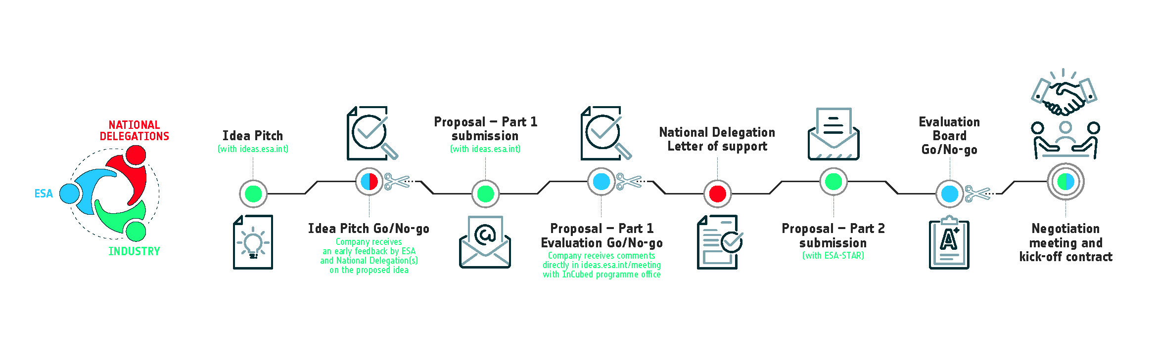 National companies may apply at any time of the year on ESA’s InCubed platform. However, applications will only be assessed in two periods each year. In 2023 the first round will take place in July and the second in September/October (date to be defined). In 2024, the initial assessment will occur in January and June, and in 2025 it will happen in January.