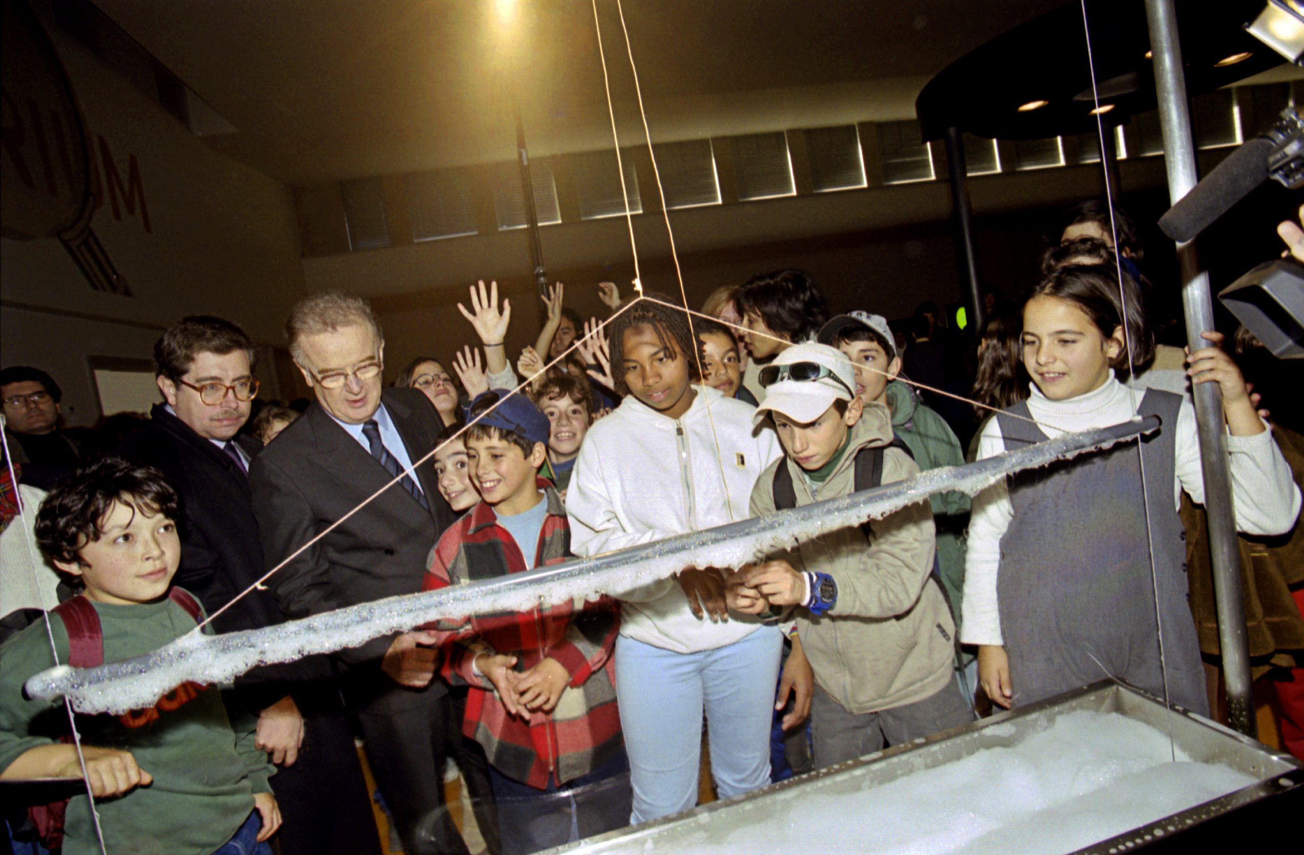 National Scientific Culture Day, 1999, at the Pavilhão do Conhecimento in Lisbon, with the then President of the Portuguese Republic, Jorge Sampaio, and the Minister for Science and Technology, José Mariano Gago . © Ciência Viva