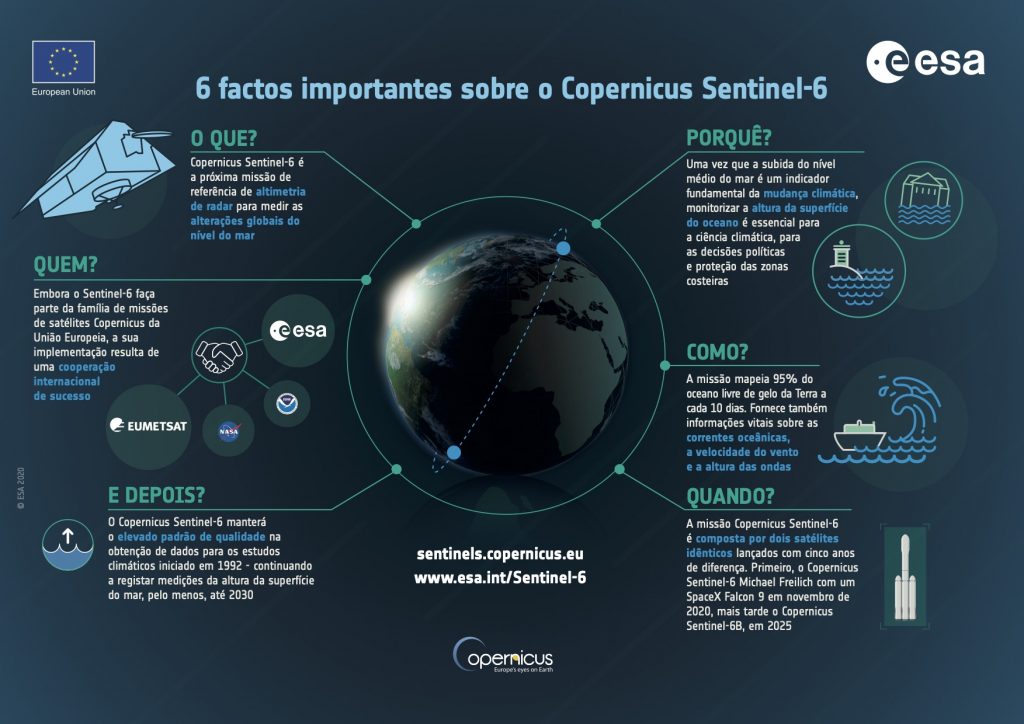 A missão altimétrica Sentinel-6 terá início já no próximo dia 21 de novembro com o lançamento do satélite Sentinel-6 Michael Freilich, permitindo dar continuidade a três décadas de observação do nível do mar.