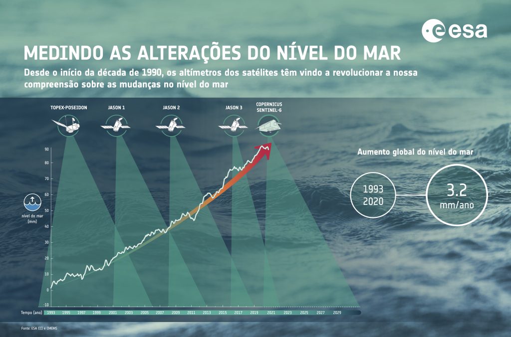 Após o lançamento da missão TOPEX/Poseidon (T/P) em 1992, talvez a mais famosa missão de altimetria por satélite, várias outras foram lançadas com um altímetro radar a bordo. Os objetivos principais desta missão conjunta da NASA e do CNES prendiam-se essencialmente com o estudo da topografia oceânica, da variabilidade oceânica e do nível do mar à escala global. Seguiram-se as missões Jason-1 (2002-2013), Jason-2 (2008-2019) e Jason-3 (2016-presente) com características semelhantes às da missão T/P (1992-2005). Esta série de missões altimétricas, dado o seu período de repetição (~10 dias) e a precisão inigualável das suas medidas, é considerada a série de referência para o estudo do nível do mar e da sua variação. A extensão desta série temporal até 2030 é agora possível com a missão sucessora Sentinel-6, parte do programa europeu de Observação da Terra Copernicus e que resulta de um esforço conjunto entre a EUMETSAT, a CE, a ESA, a NASA e a NOAA, permitindo, com os seus dois satélites (o lançamento do Sentinel-6B está previsto para 2025), completar quatro décadas de dados fundamentais para o estudo da climatologia terrestre.