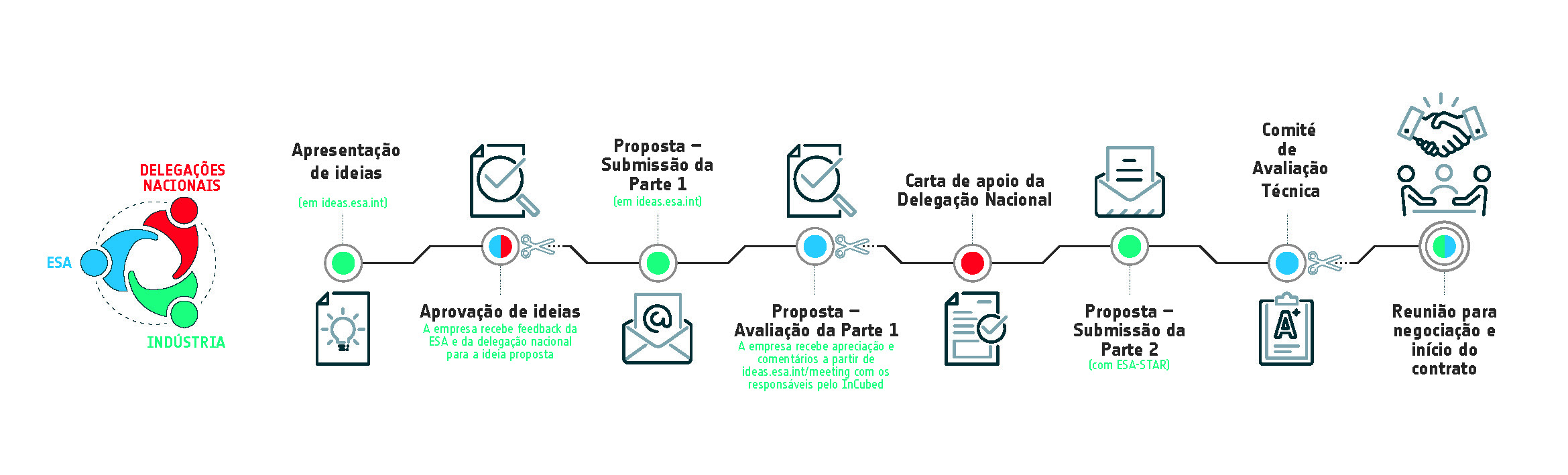 Para cada período de avaliação haverá um dia dedicado (pitch-day) para a apresentação das ideias a concurso. A avaliação das propostas será feita em conjunto pela equipa InCubed da ESA e os membros da Agência Espacial Portuguesa, que irão avaliar e selecionar as melhores ideias de acordo com critérios como a credibilidade do caso de negócio, a viabilidade técnica, a ligação do projeto à observação da Terra e a experiência e capacidade técnica da equipa.